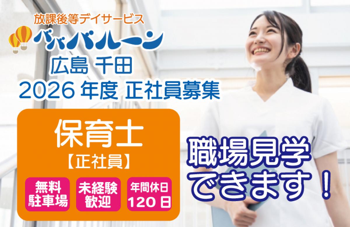 放課後等デイサービスバババルーン福山引野では、教員(正社員)を募集しています。